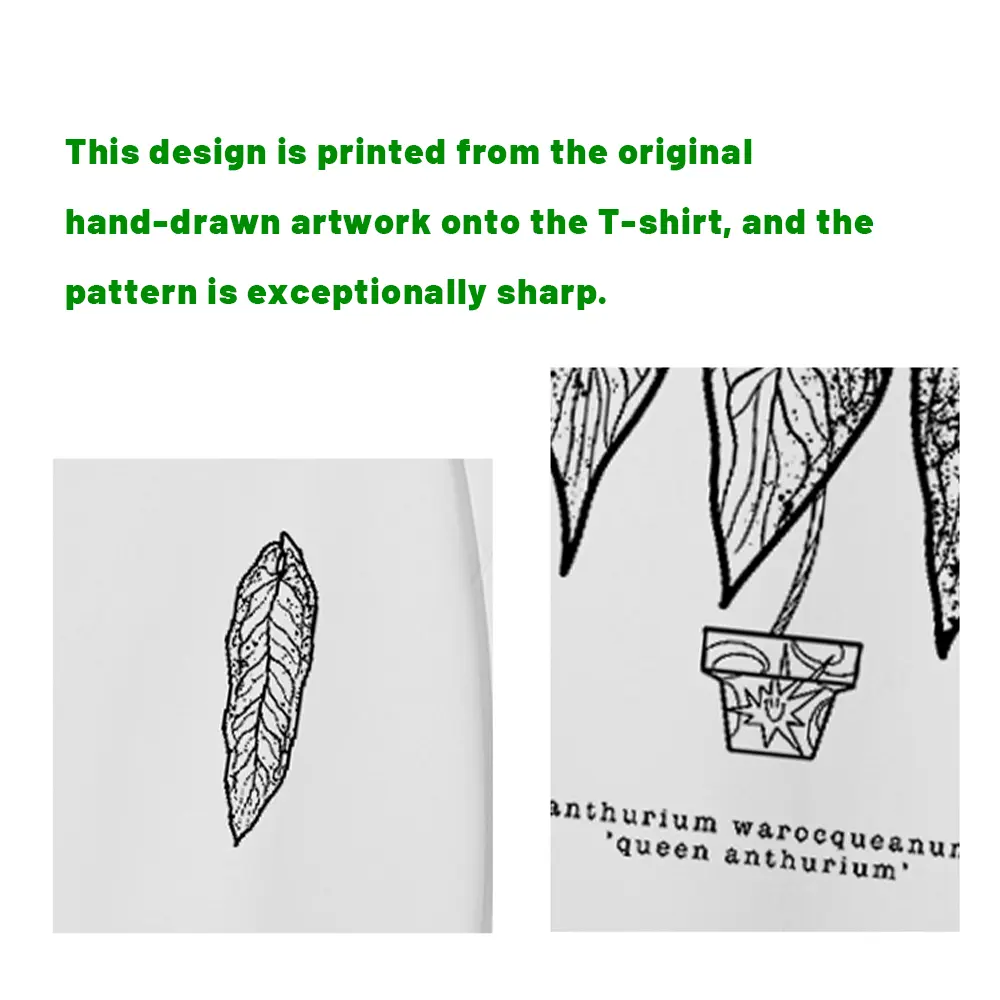Botanical Artwear:Â Features an exclusive, scientifically accurate hand-drawn illustration of an Anthurium (Flamingo Flower).