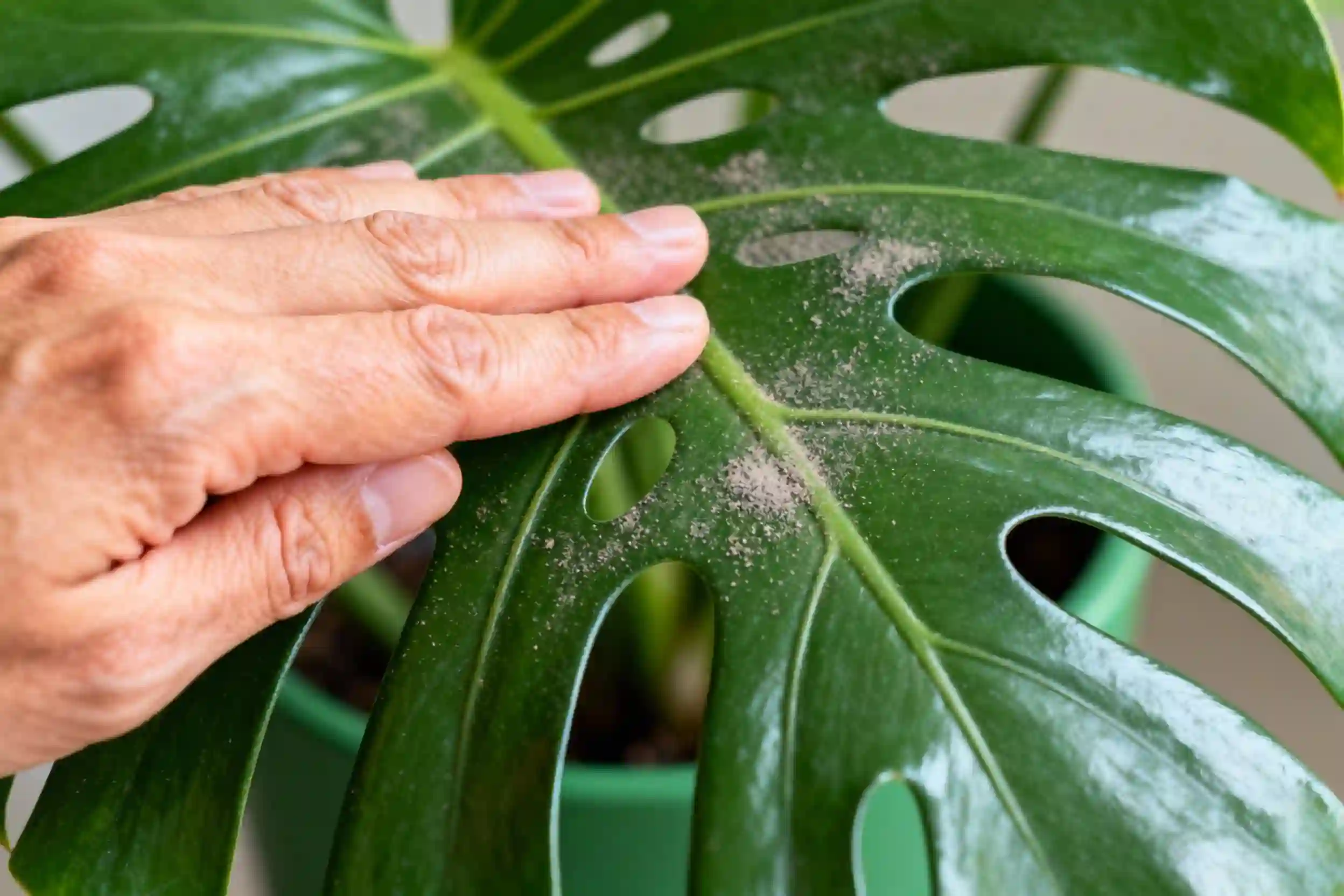 Monstera leaves are broad and beautiful – which also makes them dust magnets. A thin layer of dust: