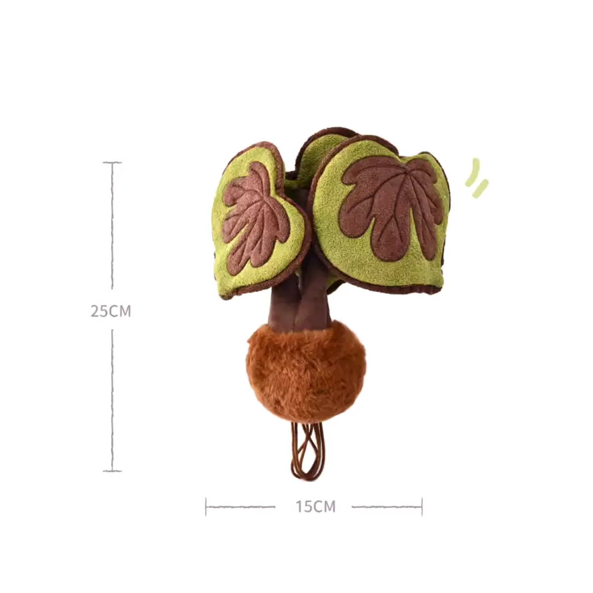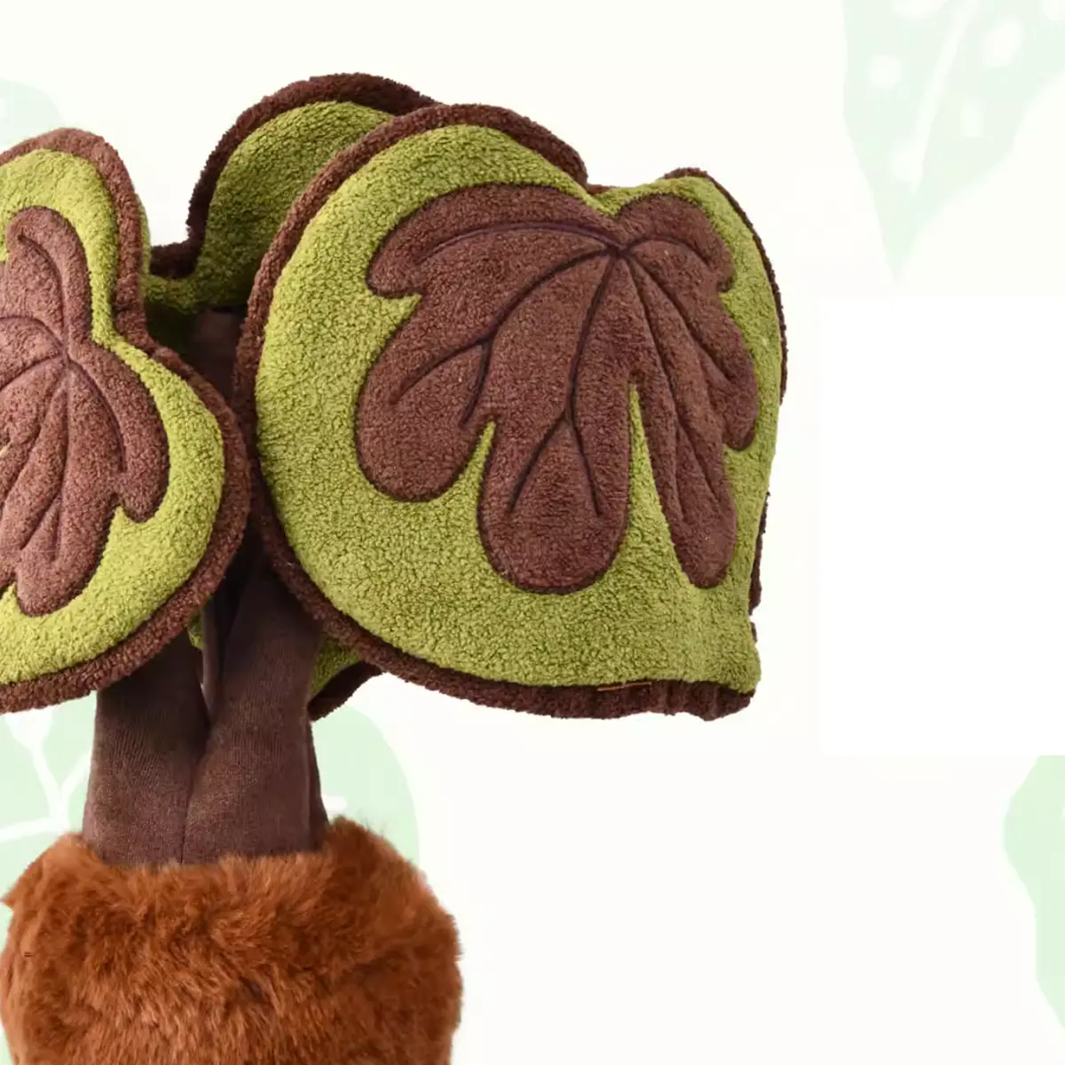 Made from 100% cotton plush fabric and polyester fiber filling, the plant base is designed to resemble a natural moss ball, complete with soft textures and a hint of woodland warmth. A flexible metal frame inside the plush stem helps each leaf stand gracefully, giving it the look of a living potted plant.